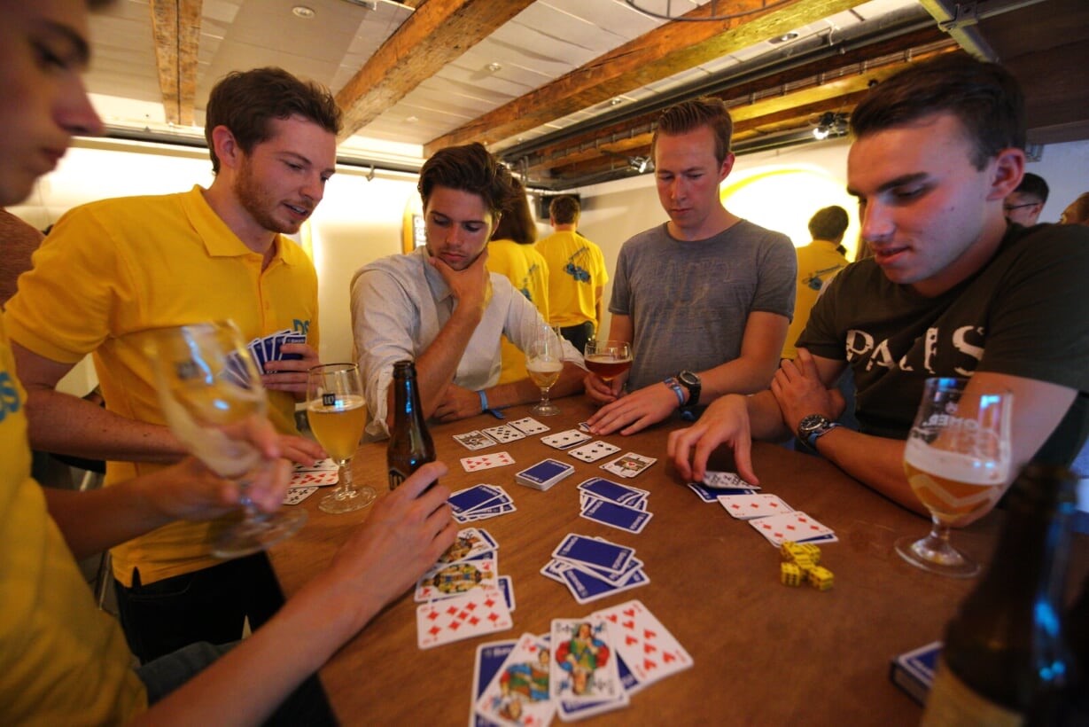 Tijdens de borrel komen leden vaak naar beneden om in wat rustigere sferen te kaarten of te dobbelen.